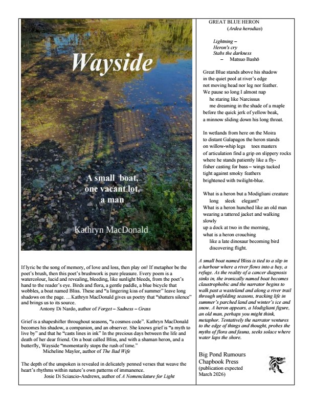 For more about my poetry, please look under the “Poetry” secion where you’ll find poems and links to poems published in literary journals and anthologies. I hope you enjoy this favourite poem published in Humana Obscura, Spring 2024: