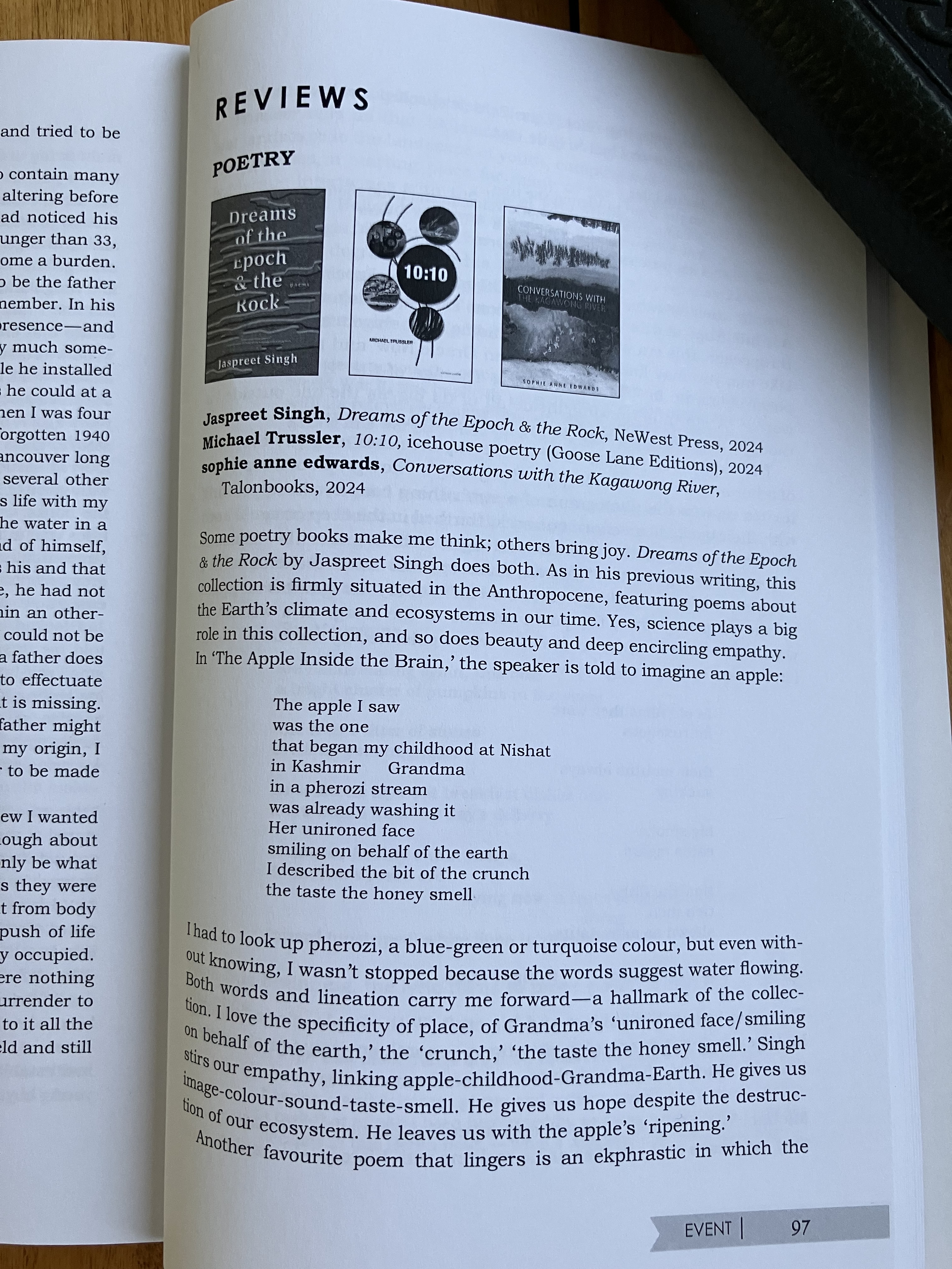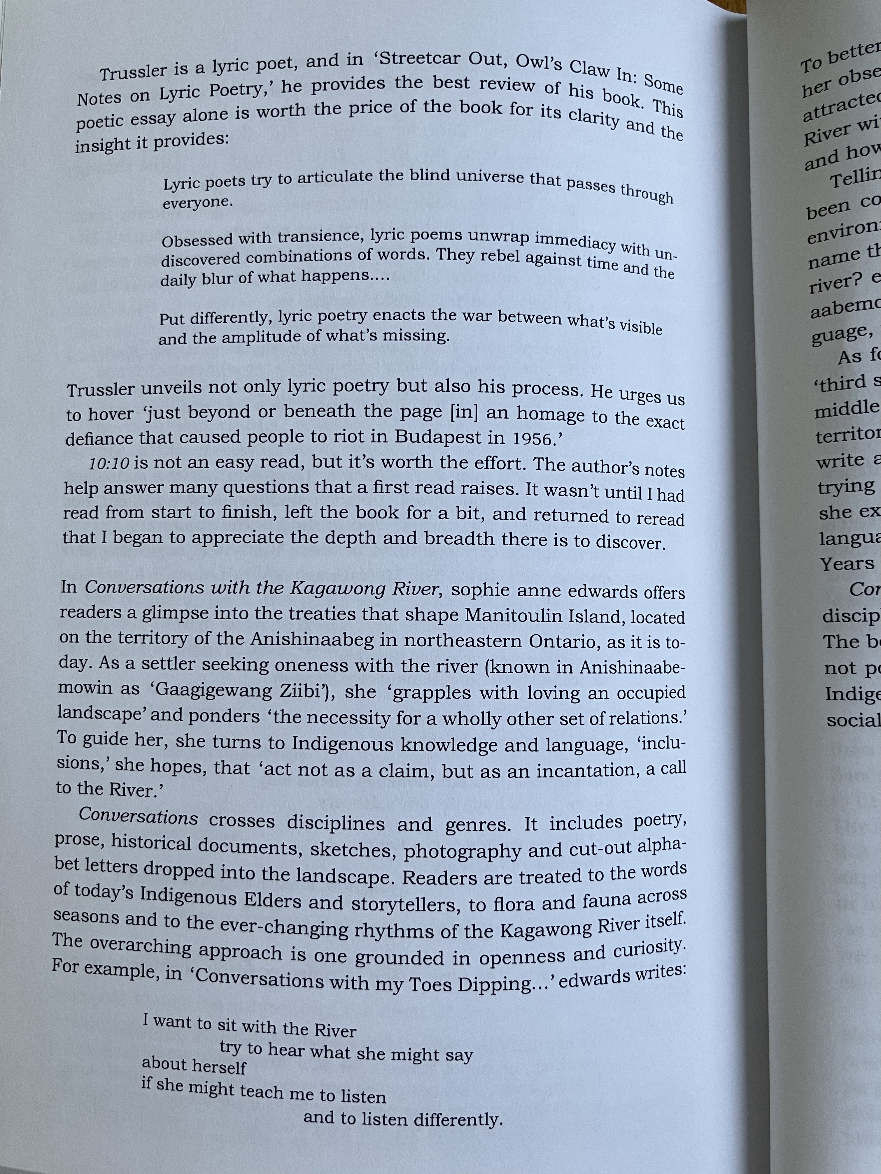 BOOK REVIEW: Dreams of the Epoch and the Rock by Jaspreet Singh, 10:10 by Michael Trussler, Conversations with the Kagawong River by sophie anne edwards